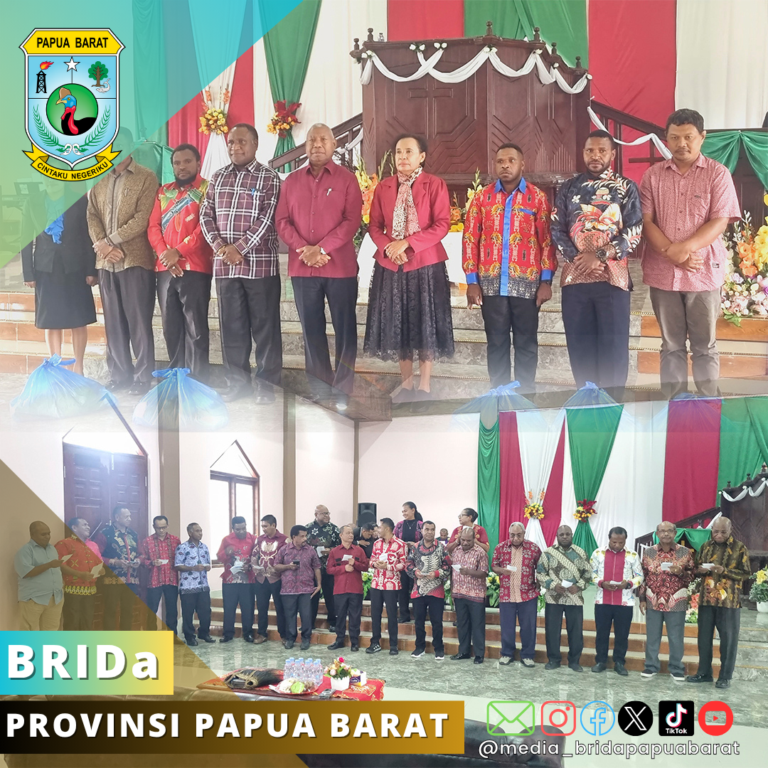 BridaNews_Pegunungan Arfak_Gubernur Papua Barat Drs. Dominggus Mandacan, M.Si bersama istri, Ny. Juliana Mandacan, menghadiri Ibadah Oikumene bersama beberapa pimpinan perangkat daerah Provinsi Papua Barat, Pemerintah Kabupaten Pegunungan Arfak, serta masyarakat, di Gereja Sentral Oikumene GPKAI Kampung Andan, Distrik Anggi. Minggu (3/8/2025)