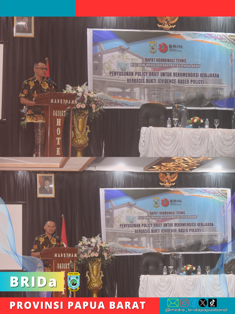 BridaNews_Manokwari, Brida News - Hari kedua pelaksanaan Rakornis Riset dan Inovasi Daerah Provinsi Papua Barat difokuskan pada pengenalan Policy Brief mengusung tema “Penyusunan policy brief untuk rekomendasi kebijakan berbasis bukti (evidence based policy)”.